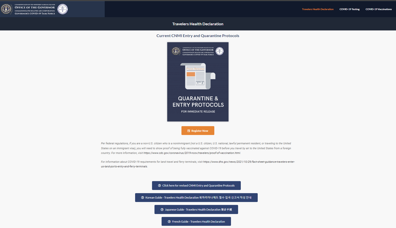 북마리아나제도 필수 입국 신고서(CNMI Health Declaration Form)