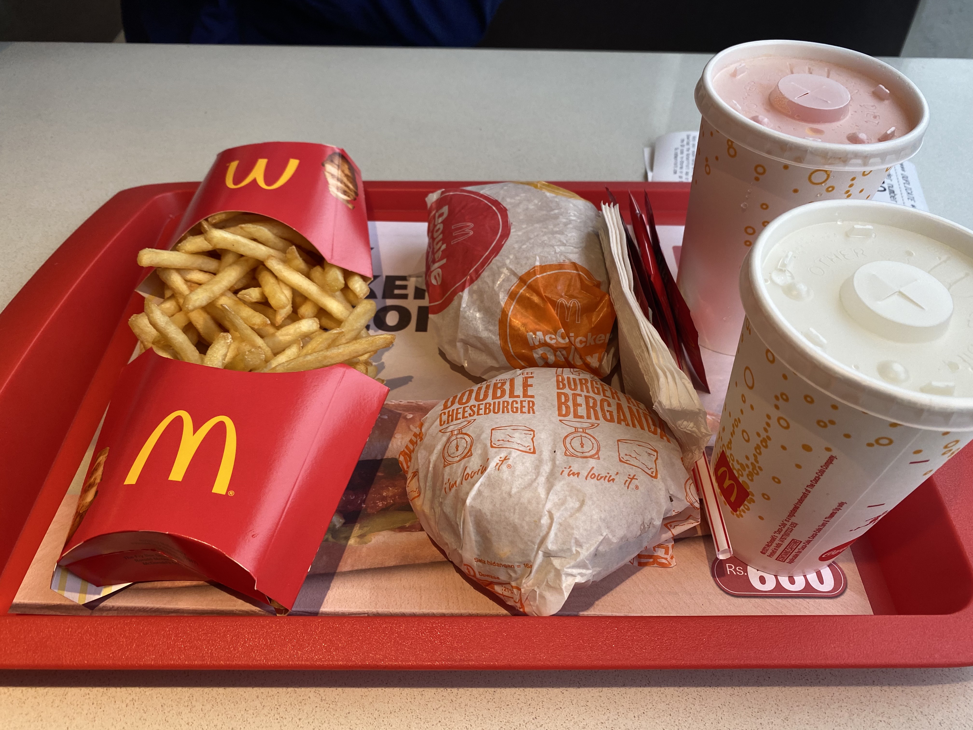 나는 맥치킨, 남편은 더블치즈버거를 시켰다. 우리가 좋아하는 쿼터파운드치즈버거는 없었다.