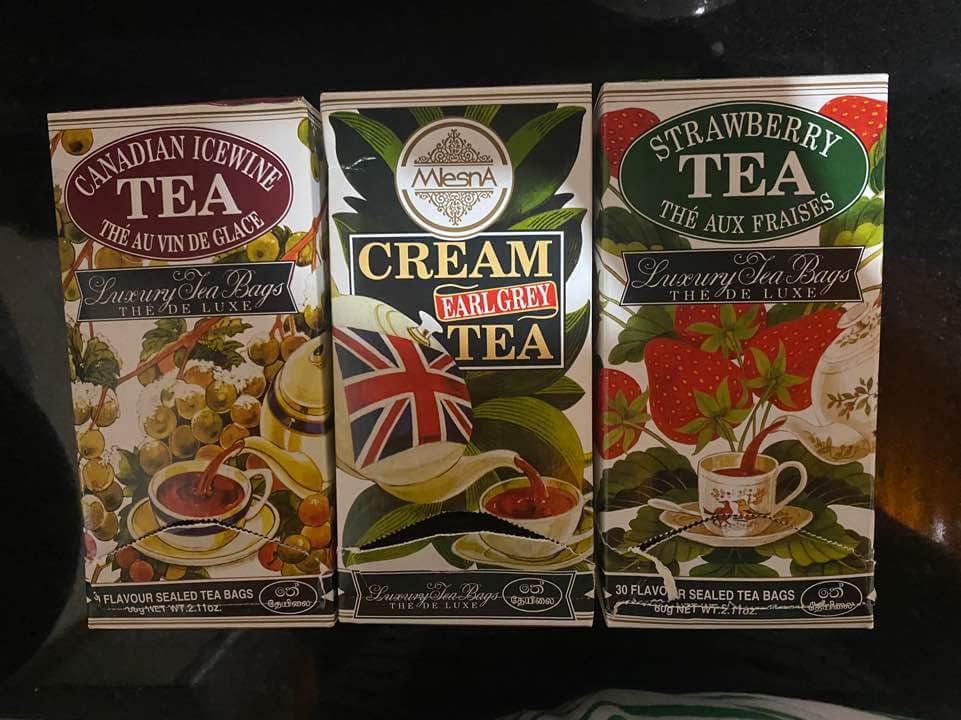 티백으로 되어 있는 홍차, 녹차, 여러 가지 가향차와 찻잎으로 들어있는 틴 케이스의 차, 천 주머니에 들어있는 차 등 3,000여 가지의 제품이 출시되어 있습니다. 한국에서는 한 예능프로그램에서 김동욱 배우가 믈레즈나의 아이스와인 티를 마시는 모습이 나와서 아이스와인 티가 인기가 있었다고 합니다. 아이스와인 외에 크림 얼그레이 티, 메이플 티가 유명합니다.